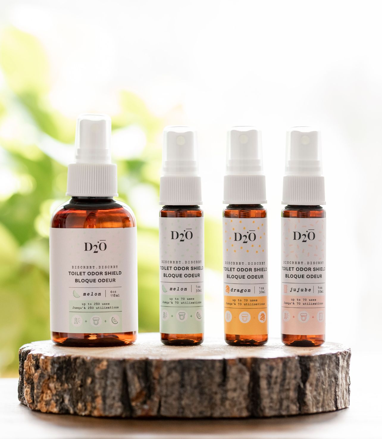 D2O est un bloque-odeur aux fragrances originales à vaporiser sur l’eau de la cuvette avant utilisation pour enrayer les mauvaises odeurs.