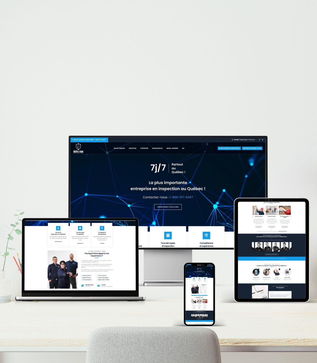 Chef de file en inspection de bâtiments au Québec, Inspec-Thor souhaitait moderniser sa présence numérique et offrir à ses franchisés et aux clients un outil simple, performant et convivial.