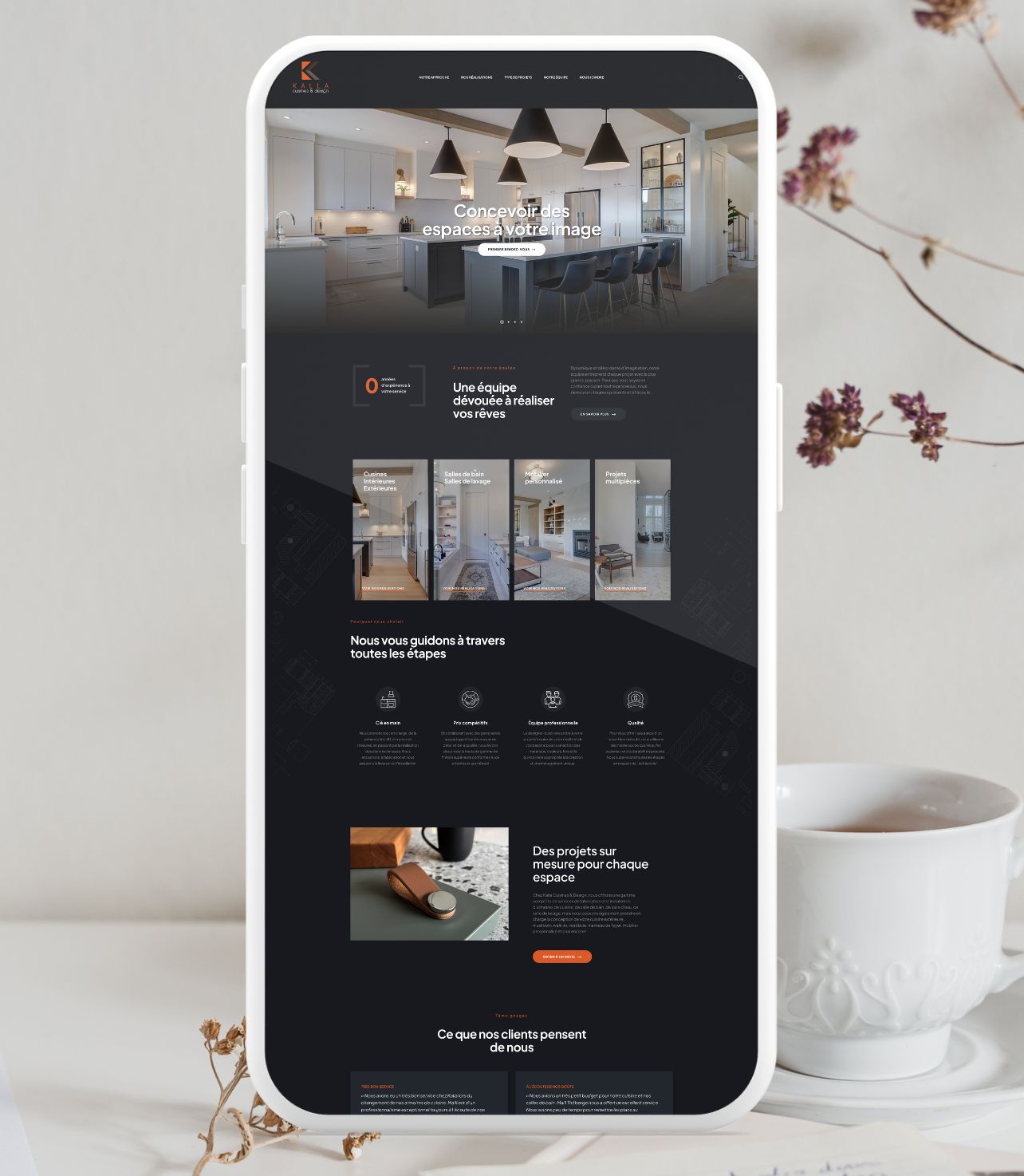 Les propriétaires voulaient un site web qui incarne l’approche personnalisée et humaine de l’entreprise. Nous avons opté pour une vitrine qui met en valeur l’expertise et le savoir-faire des designers-cuisinistes.